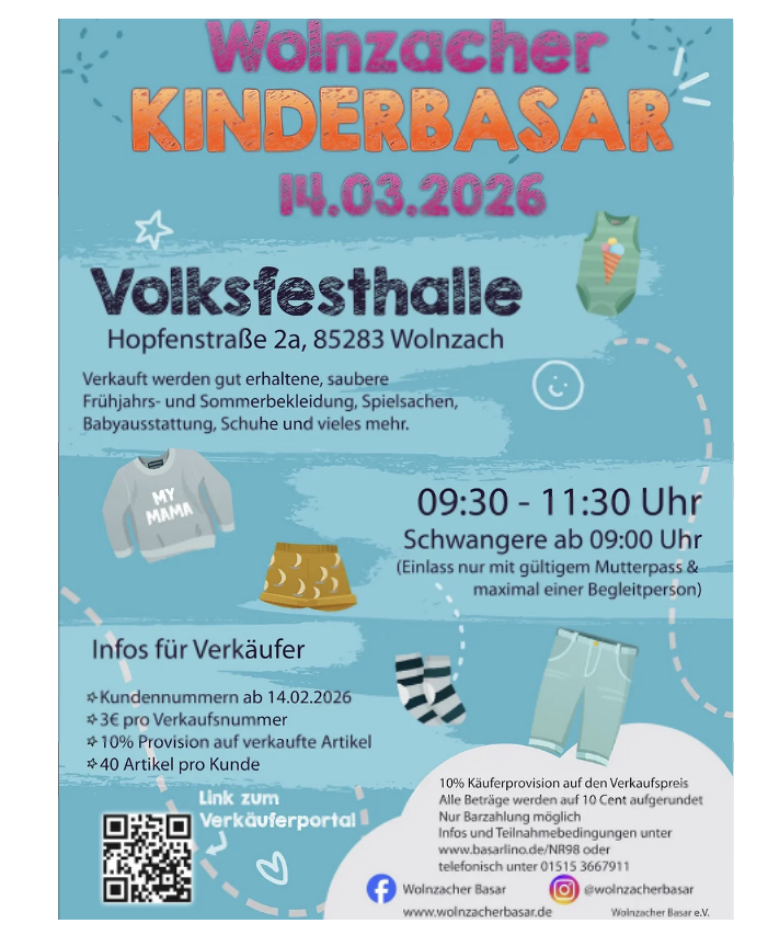 Hier findest du alle Informationen für deinen Verkauf beim Wolnzacher Kinderbasar. Damit beim Basar alles reibungslos funktioniert, bitten wir dich, folgendes Informationsblatt zwingend zu beachten: